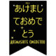 Diga Feliz ano novo em 16 idiomas, incluindo inglês, alemão, mandarim, híndi, português, norueguês, turco, italiano, francês, húngaro, checo e urdu. Fonte estilo 1920 com fundo preto e texto amarelo toca o ano novo, não importa qual fuso horário você está no mundo!