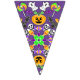 Bandeira de mandala, cor de laranja, preta, roxa e verde limão do Halloween, com crânios, fantasmas, morcegos, milho doce, bonitinho, mas assustador, desenhado à mão, para decoração de trabalho de arte do Halloween.