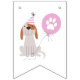 Festa divertida e fofa, bandeja para a festa de aniversário do tema do cachorro do seu filho. Ilustração de um cachorro com chapéu de festa rosa e balão. O texto nas bandeiras diz "FELIZ ANIVERSÁRIO". Excelente para a festa de aniversário de uma garota.