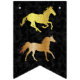 Celebre o dia da corrida de cavalos com estas bandeiras de festas divertidas. O texto diz, "E eles estão fora" com cavalos e ferraduras em ouro, prata e bronze.