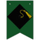 Boné de formatura preto clássico e design de fita dourada em um fundo verde.