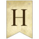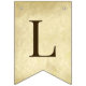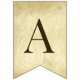 A bunting flags banner fit for religious celebrations (e.g. baptisms or religious confirmations). Brown caps on a background simulating parchment (old paper) with 2 crosses between the words. The message is "God Bless" followed by a 6 letters name (the default is Elijah).