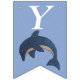 Bandeirinha Golfinho de Aniversário da Gliteria Branca Azul Pu