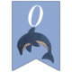 Esta bandeira em forma de bunting Happy Birthday é um azul-claro brilhante com um golfinho de desenho animado branco e azul-escuro brilhante em uma posição de salto. Personalize o ano de aniversário com os modelos.