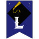 Graduação felicita a decoração de festas com boné de formatura preto clássico e ouro sobre fundo azul.