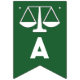 Cartaz de parabéns de graduação de advocacia criativa, com escalas de justiça em fundo verde.