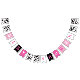 Dois tons diferentes de impressão cor-de-rosa, preto, branco, castanho e vaca compõem esta faixa de "Chá de fraldas".