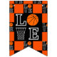Jogador de basquete, Aniversário. Bandeiras De Festa de aniversário De Bola Negra E Laranja. Bolas de basquete com um desejo de aniversário feliz em um fundo negro.