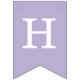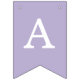 Uma faixa simples de bandeiras para um casamento de lavanda (roxo claro), com os nomes da noiva e do noivo, com bonés brancos sobre fundo de lavanda.