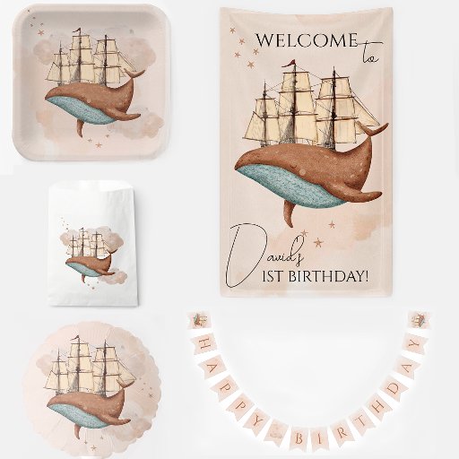 Whale Ship Pastel Gender-Neutral Birthday Criado por Zakreva Olha