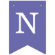 Uma simples bandeira de sinalização para um casamento violeta (roxo), com os nomes dos noivos, com letras maiúsculas brancas em fundo violeta.