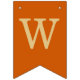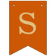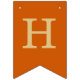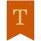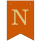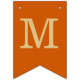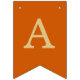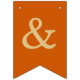 Uma simples faixa de bandeirolas para um casamento laranja queimado, com os nomes dos noivos, com letras maiúsculas amarelo dourado em fundo cor laranja queimado.