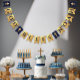 Bandeirinha Nome do deus abençoe Marinho Dourado Blue Baptism