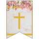 Um ajustado de bandeira de bunting para batismos, primeiros sindicatos ou confirmações religiosas. bonés ouros sobre fundo de mármore branco, com orquídeas cor-de-rosa (e brancas) na borda superior, com duas cruzes de ouro entre as palavras. A mensagem é "Deus abençoe" seguida de um nome de 6 letras que você deve alterar a letra por letra (o padrão é Sophia). As orquídeas cor-de-rosa e branca são de um cartão-postal antigo de Bertha Maguire (1862-1910), agora no dominio público.