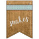 Comemore a chegada nova com esta serapilheira rústica e o impressão de madeira do celeiro "é bandeira da estamenha de um menino". Todas as bandeiras têm um fundo do impressão de serapilheira do falso. As 2 bandeiras da extremidade têm uma camada de madeira resistida coberta com uma fita da viga do azul e do branco de turquesa com bordas marrons do plissado, e setas marrons entrecruzadas no centro (repetido nas bandeiras 5 e 11). As bandeiras 6-10 têm a mesma folha de prova de madeira velha com "ela são um menino" soletrado para fora no azul e no vermelho de turquesa, com as setas curvadas sob o texto. As bandeiras 2-4 e 12-15 têm a fita da viga na parte superior, e as palavras "cobras e caudas dos caracóis e do cão de filhote de cachorro" em uma pia batismal branca do quadro do roteiro com detalhes de costura da borda branca do falso.