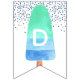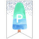 Projetado para combinar nossos convites de festas de aniversários de picolé de cor d'água, este lindo design de bandeiras de verão apresenta dezesseis campos de texto personalizados para soletrar sua mensagem (mostrada com "Parabéns"), com letras brancas em picolés azuis e verdes. Uma borda de confete azul no topo de cada sinalizador completa o design.