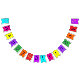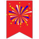 Uma bandeira colorida para um Parabéns especial. 3 das bandeiras têm fogos de artifício coloridos.