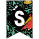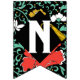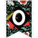 Graduação criativa felicita a decoração partidária com boné de formatura preto e ouro sobre fundo floral.