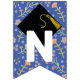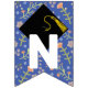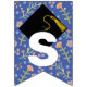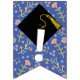 Graduação felicita o design com boné de formatura preto e ouro sobre fundo floral.
