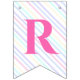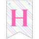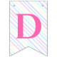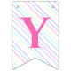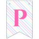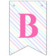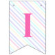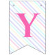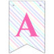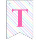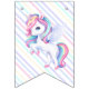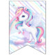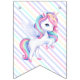 Bunting Flags para uma festa de aniversário mágica com um adorável unicórnio com asas nas nuvens num fundo arco-íris.