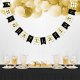 Celebre o seu formando com esta faixa elegante e glamourosa de festa de formatura que inclui "Parabéns!" com boné de formando e detalhes modernos de faixa horizontal. O esquema clássico de cores preto, branco e ouro pode ser personalizado para corresponder às cores da escola ou do formando.