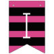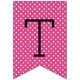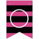 O banner de bunting de festa de formatura na moda contém "Parabéns!" com detalhes do boné, faixa e padrão de bolinhas. Esquema de cores preto, branco e magenta quente (pode ser personalizado para corresponder às cores da escola).
