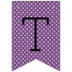 O banner de bunting de festa de formatura na moda contém "Parabéns!" com detalhes do boné, faixa e padrão de bolinhas. Esquema de cores preto, branco e roxo (pode ser personalizado para corresponder às cores da escola).