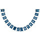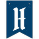 Feliz texto de aniversário sobre um fundo azul marinho. Uma âncora está entre as palavras e um navio galeão e um farol estão nas extremidades.