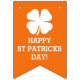 Bandeiras felizes feitas sob encomenda verdes & da laranja quatro da folha do trevo do Dia de São Patrício do partido da estamenha da bandeira. Design irlandês do orgulho com mensagem personalizada. As fontes do partido do divertimento e os acessórios de DIY para o rissol da rua parties. A decoração do divertimento para a casa, escritório, bar, bar, café, empresa, loja, loja, evento da surpresa, aniversário, casamento, chá de fraldas, housewarming, celebrações, recolhimentos, reunião, partidos que do traje etc. adicionam seu próprio texto personalizado a este fá-lo você mesmo modelo. Modelo moderno da tipografia com logotipo afortunado do trevo do encanto. Faça suas próprias 4 bandeiras do trevo da folha em uma corda. Agradável para miúdos e adultos. Mude a quantidade para obter o preço com desconto maioria barato. Bandeira de cores de Ireland.