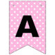 Novas pegadas de bebê com arco de fita de bolinhas rosa e branca em padrões de bolinhas brancos e cor-de-rosa. O texto é editável.