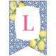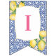 Bandeirinha Positano Lemons Azul Azulejo Branco Chá Aniversári