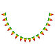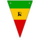Celebrate your birthday in style with this reggae Rasta flag bunting. The editable text on the flags spells out HAPPY BIRTHDAY with a blank flag on either end, plus a blank flag between the two words. There's 16 flags in total.
