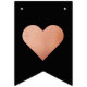 Uma faixa de bandeiras para um casamento com cores de casamento preto e rosa, com as palavras "Sr. & Sra." e o nome da família do novo casal e 3 corações. O texto encontra-se em bonés pretos sobre fundo (faux) de rosa dourado, os corações e as ampersas são ouro rosa sobre fundo preto. Apropriado para 7 letras como Johnson (o padrão) ou Jackson.
