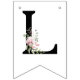 Faixa de festa moderna com letras pretas em negrito em uma fonte clássica e elegante soletrando “PARABÉNS.” O design é definido contra um fundo branco e rosa pálido que adiciona um sentimento de celebração romântica de verão. Limpo, ousado e elegante, este estandarte de festa é ideal para festas de formatura, aniversários, conquistas e todo tipo de celebração de marco. Cada letra tem folhas verdes e rosas cor de rosa adicionadas a elas.
