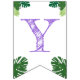 Festa engraçada de segundo aniversário de dinossauros, com faixa de bandeira rosa e púrpura tiranossauro rex e folhas verdes. Excelente para uma festa pré-histórica de moça.
