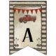 Bandeira da flâmula da estamenha com o texto, "é um menino!" para um tema rústico do chá de fraldas do estilo da fazenda. Caracterizando um caminhão vermelho do vintage, o moinho de vento, as setas e os painéis de aço oxidados corrugados combinam para divertimento, TODA A decoração do chá de fraldas do estilo do MENINO e grupo do convite. Mão projetada por Audrey Jeanne Roberts com um grupo completo ao fósforo.