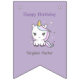 Bandeiras de Bunting Aniversário Roxo com um Unicórnio giro e bolinhas em estilo cartoon. Mude o texto para um partido personalizado, como piquenique no país, festa de inauguração, aposentadoria, etc.
