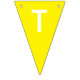 Esta bandeira feita sob encomenda colorida caracteriza dezesseis bandeiras multi-coloridas do triângulo em vermelho, em amarelo, em azul, em verde e a laranja. Cada bandeira do triângulo pode facilmente ser personalizada com seu próprio texto ou criar uma bandeira vazia sem o texto simplesmente suprimindo o texto da caixa.