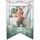 One Happy Camper Birthday Monthly Photo Bunting Flags faz parte da coleção One Happy Camper. Este produto apresenta fundo florestal, tenda de acampamento, caminhão de acampamento e fogueira. Feito principalmente em cores verde e marrom com fontes decorativas. Explore mais produtos correspondentes em nossa loja.