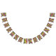 O design apresenta um padrão composto por faixas horizontais em várias cores, incluindo amarelo, verde, roxo e rosa. Entre essas listras coloridas estão listras brancas mais finas. Cada faixa colorida é adornada com uma sequência de pequenos pontos que são espaçados uniformemente ao longo do comprimento da faixa. Os pontos aparecem em cores contrastantes com a faixa em que estão, como pontos brancos nas listras roxa e verde e pontos pretos nas listras amarela e rosa. Esse padrão repetitivo cria uma textura visualmente estimulante que poderia ser usada em fundos, têxteis ou outros elementos design devido a suas cores vibrantes e sequências de pontos ritmados.