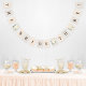 O banner de bunting "Bride to Be" do chá de panela de casamento apresenta buquês florais elegantes de aquarela, incluindo flores de rosa e ranúculo, assim como riscas escovas e padrões de bolinhas. Estão incluídos tons neutros de rosa-pincel, bege, branco, creme e verde. Perfeito para um evento de primavera ou verão.