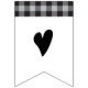 Este design é clássico e moderno! Tem um padrão de xadrez de búfalo em preto e cinza. Diz "RECEM CASADOS" com corações adoráveis.