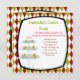 Biscoitos para todos? Nada diz mais sobre as festas de fim de ano do que uma boa e tradicional troca de biscoitos! Convide sua família e amigos para alguns quitutes com este adorável convite de troca de biscoitos. Ele tem um fundo vermelho e verde em forma de diamante. Há uma borda preta e um centro branco. No canto inferior esquerdo, há uma bandeja de biscoitos com vários andares com todos os biscoitos. Use o verso deste convite fofo para explicar como funciona a troca de biscoitos. Confira os muitos outros designs que temos.