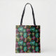 Esta bolsa de tote é mostrada com um design de impressão de flocos de neve de Natal multicolor. Tamanho médio mostrado. Tem pulseiras negras. Personalize este item ou comprar como está. Imagem do stock vecteezy.com