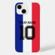 Invólucro iPhone 14 com ventilador de futebol francês. Personalize com nome, número de camisa, equipe etc. Bandeira de France design.