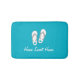 Água doce em casa / chinelos de praia azul turquesa não tapada tapete de banho. Lixeiras/design para destinos tropicais, casas de férias na praia, barco, etc. Cor de fundo personalizável. tapete de banheiro disponível em tamanho pequeno, médio e grande. Trendy Bathroom home decor com sandálias de coração impressão e citação ou nome personalizado. Também faça uma bela ideia de presente de casamento para noiva e casal de noivos recém-casados. Ideias personalizadas e únicas para seu interior.