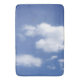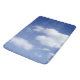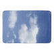 Nuvens brancas fofas estão espalhadas por um céu azul brilhante. A imagem transmite uma sensação de paz e abertura.
