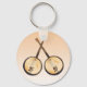 Este chaveiro apresenta dois banjos em um fundo de gradiente laranja.