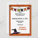 Personalize a frente e o verso deste convite da festa de Halloween em laranja irado, acentuado com uma faixa decorativa, um bonitinho chapéu de bruxa e uma teia de aranha. Basta editar seus detalhes no editor de texto fácil do zazzle. Adicione pratos, copos, guardanapos e muito mais de uma grande mistura e coleção de fósforos que coordena com este design.