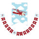 Parabéns Banner de aniversário no tema Avião Vermelho Vintage.